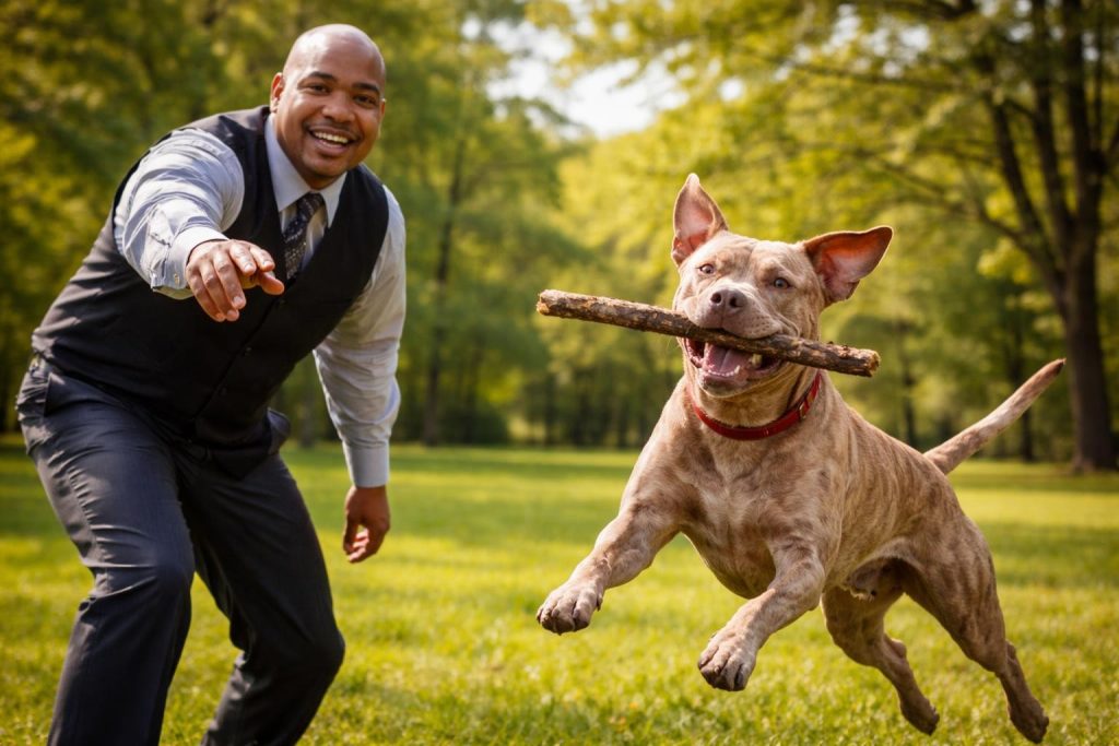Poo is a delightful female Pit Bull mix with a heritage that includes 62.5% American Staffordshire Terrier and 12.5% Labrador Retriever. She is fully potty-trained and already knows essential commands like “sit” and “heel”. Her perfect match is a family that can match her joyful energy and provide the stable, loving environment she deserves.