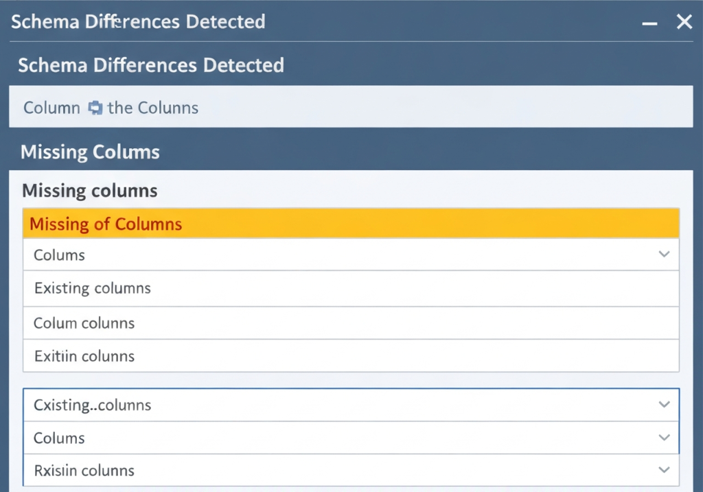 • Real-Time Schema Detection: Instantly identify if your database is “Out of Sync.” Our tool currently tracks missing columns—like the new employees.salary or orders.order_number fields—so you don’t have to.